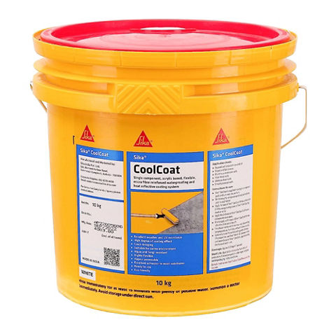 Sika® CoolCoat is a flexible, liquid applied, single component, uv and weather resistant, acrylic waterproofing membrane for all types of exposed roof slabs(new and old),terraces(sloped and flat),etc. Sika® CoolCoat contains cross-linking polymers, special glass micro fibers, pigments and advanced antifungal additive that provides long lasting tough waterproofing membrane. The high Solar Reflective Index of the membrane serves as a heat reflective surface and reduces heat ingress keeping the interior of the building cooler.